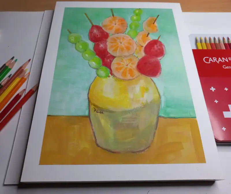 경험상 과슈 위에 수채색연필을 쓰게되면