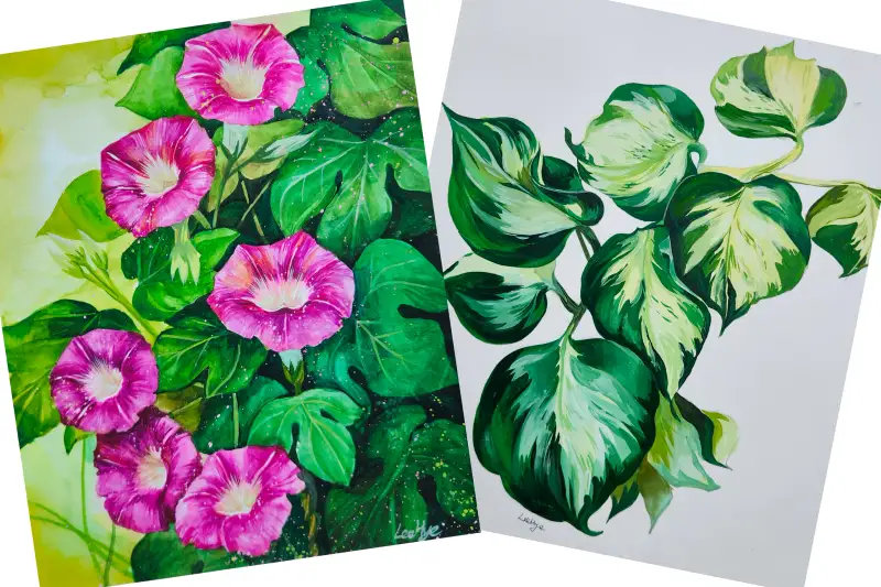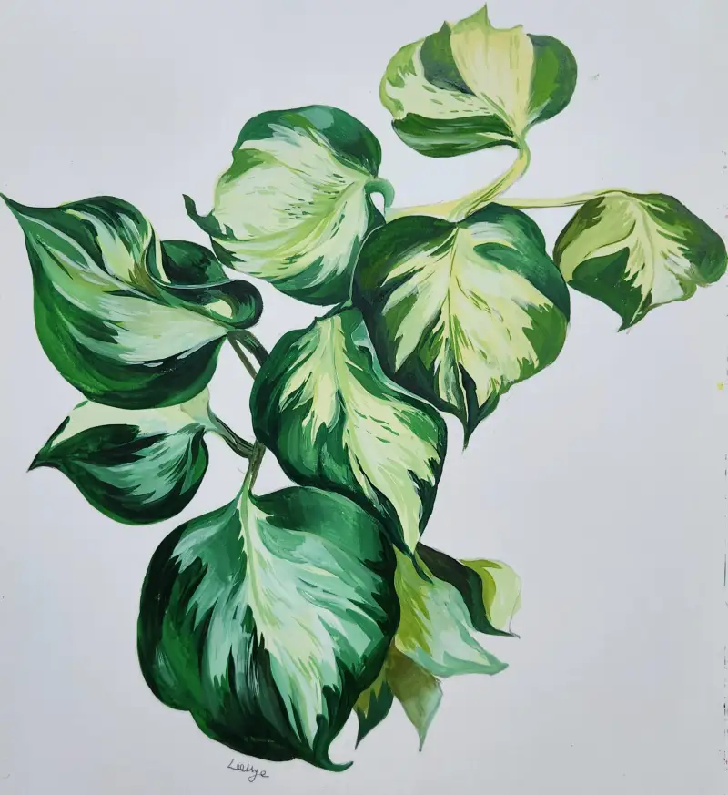 잎사귀에 자연스러운 무늬가 인상적인데 불투명수채화로 그려보니 더욱 멋스러웠어요.