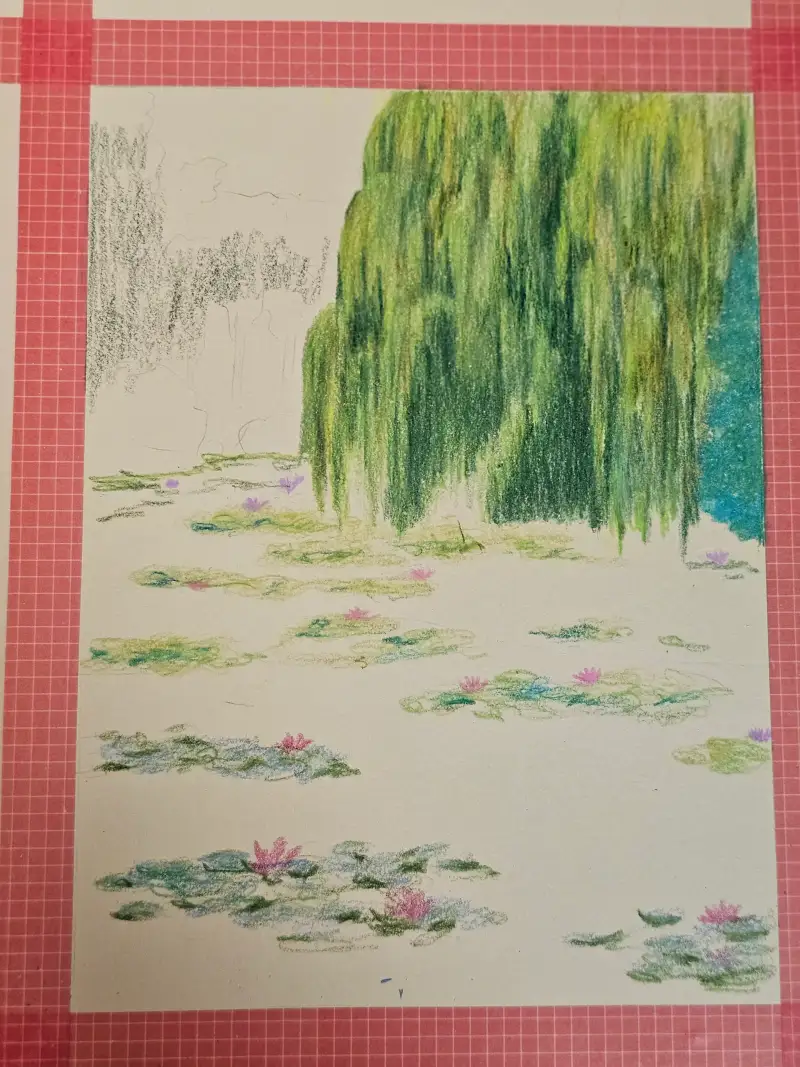 수련은 묘사를 어떻게 할까 하다가 세밀함보단 자연스럽고 부드러운 느낌을 위해 단순하게 채색했다.