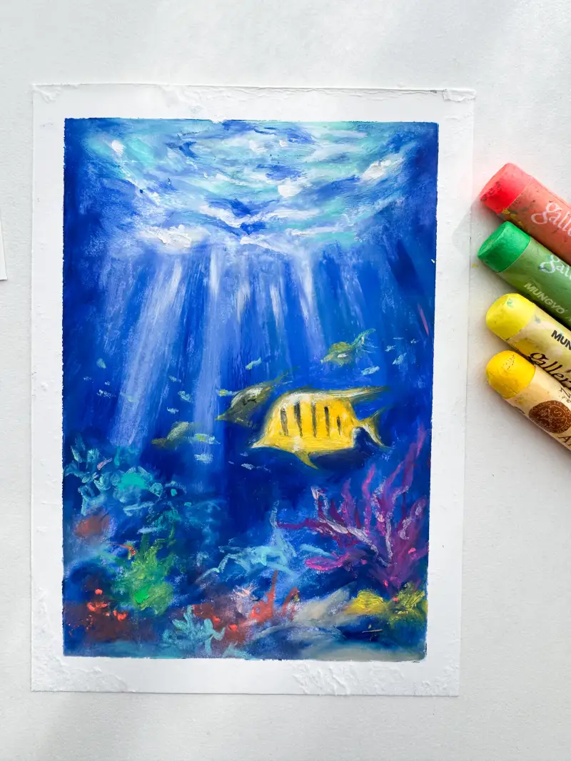노란물고기랑 산호초를 살짝 표현해보았어요