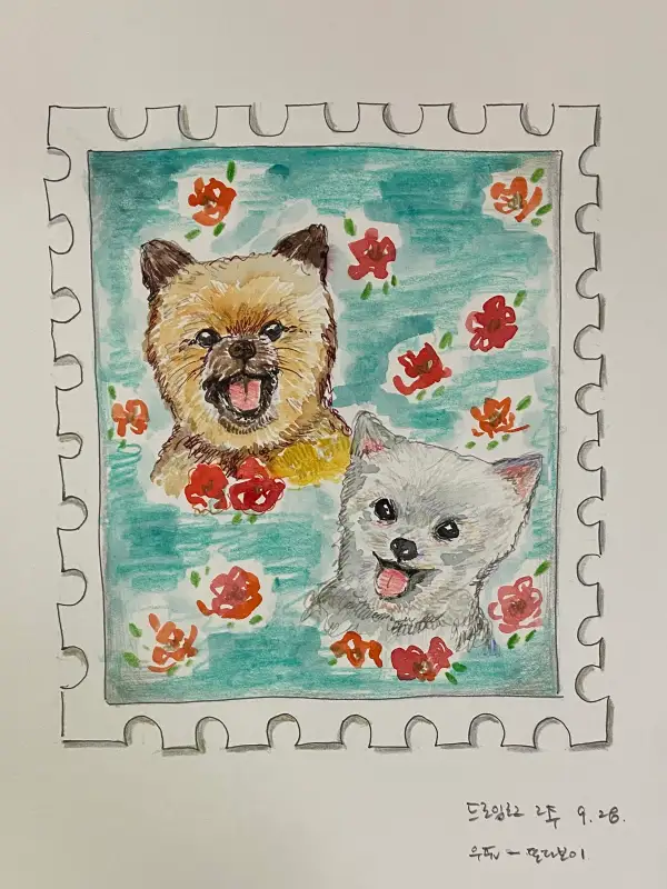 드로잉로그 2주: 우표-댕댕이