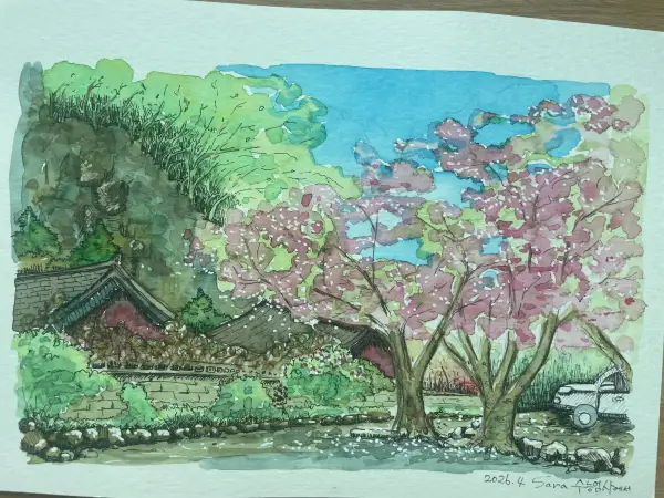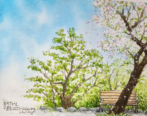 드로잉로그 15기 1주차 벗꽃을 보내기가 아쉬워서..