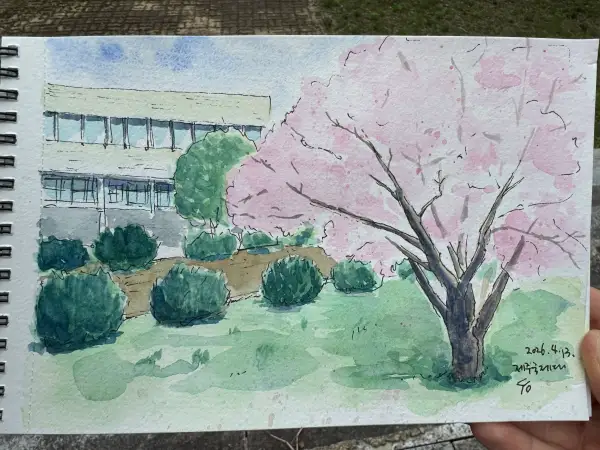 드로잉 로그 1주차: 지금의 풍경-도서관 앞 작은 숲