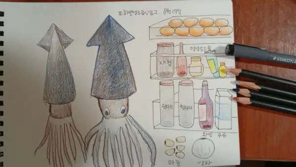 화방넷 드로잉로그 11기 - 냉장고 속 재료 (오징어)
