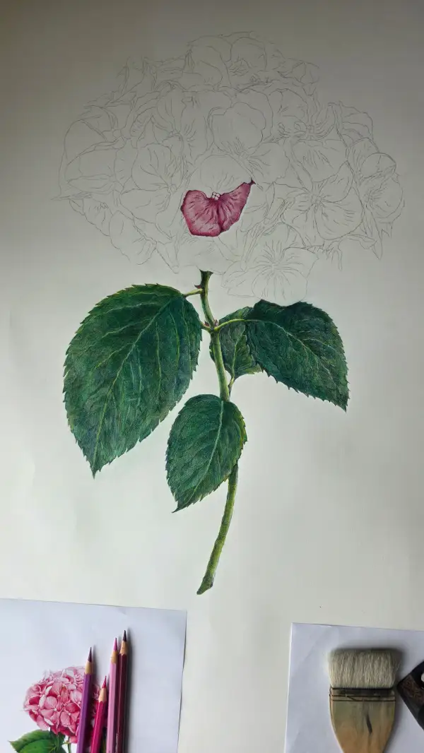 색연필 작업. 2번째 사진 올립니다.(수국)