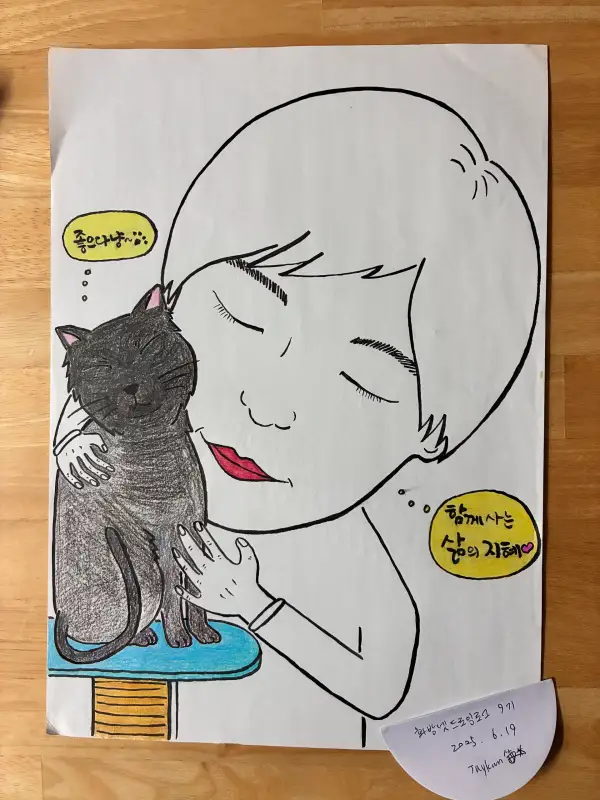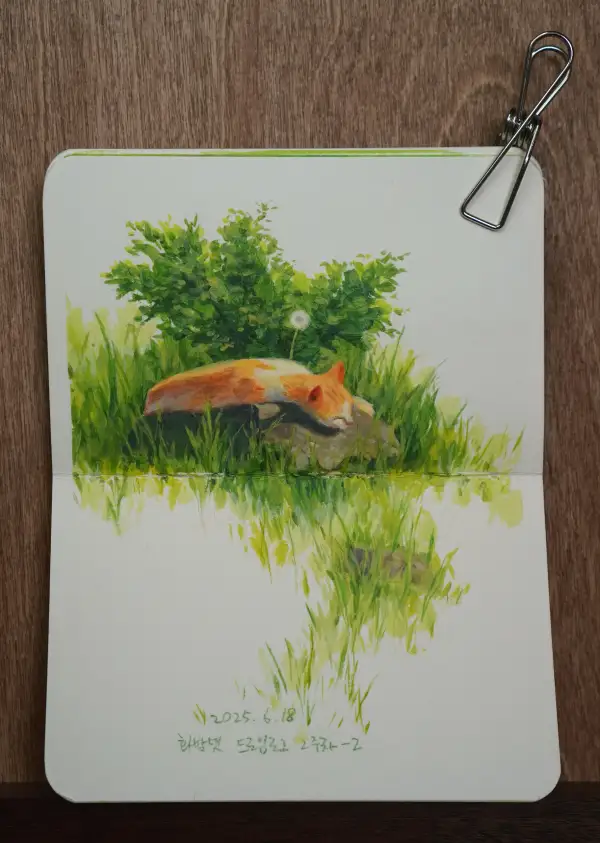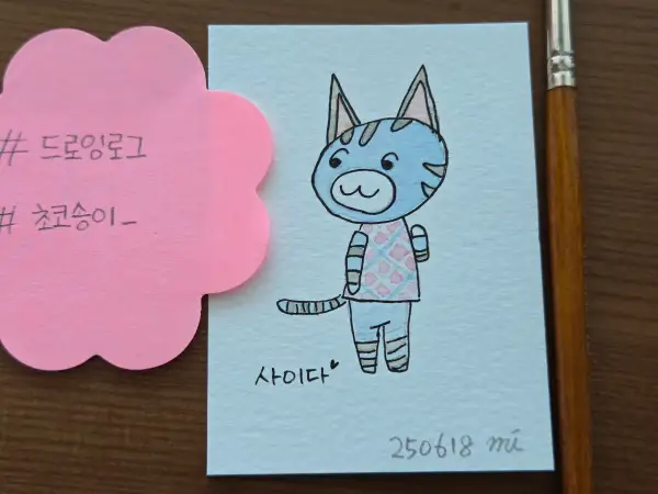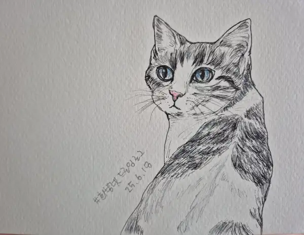 드로잉로그9기-동물(수채화+포스마마카흰색)-고양이