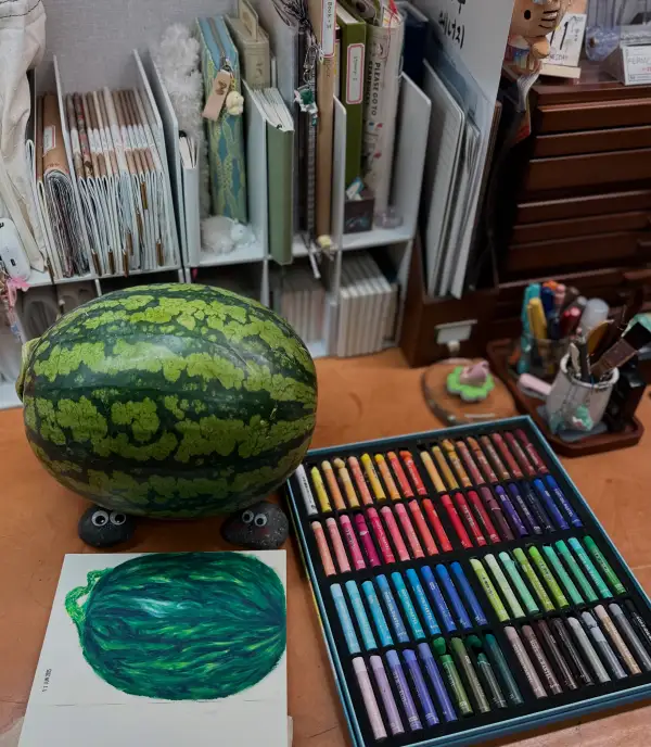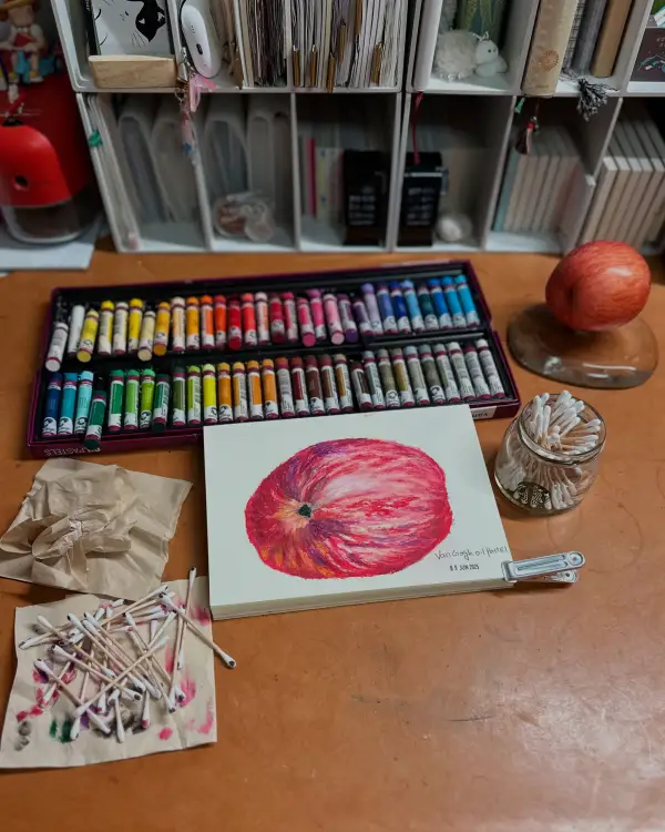 1주차 - 과일(사과) 오일파스텔화