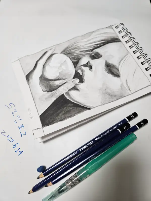 드로잉로그9_1-2_천도복숭아 먹는 사람_수채연필
