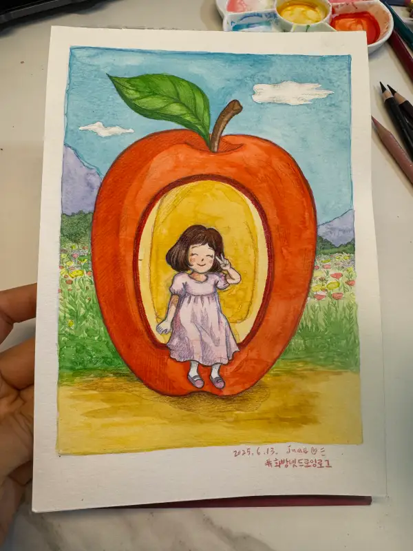 드로잉로그9기 1주차 과일2 사과를 든 백설공주
