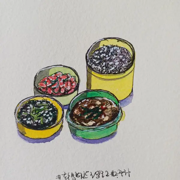 드로잉로그7기 2주 - 아들의 3단 도시락