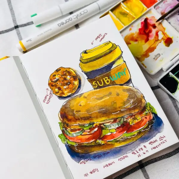 드로잉로그7기 2주차)간단하게 먹기 좋은 베이글+무스비
