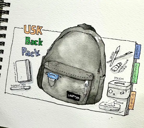 그림도구가 들어있는 백팩