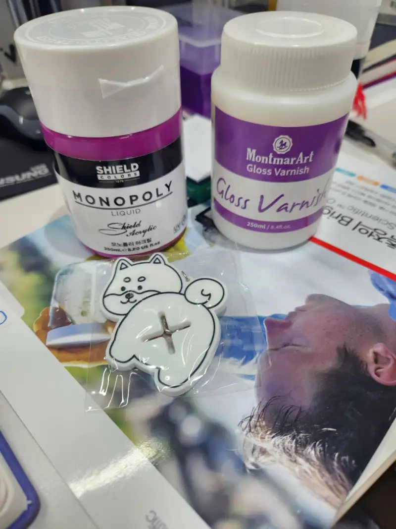안녕하세요. 고무 키링에 푸어링 아트를 하려고 합니다.