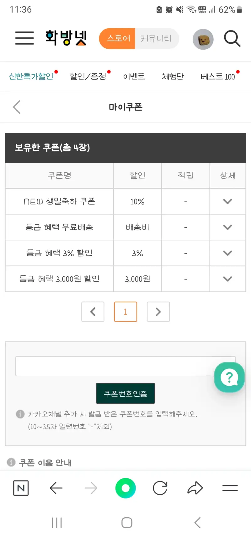 화방넷 쿠폰 사용 관련 질문