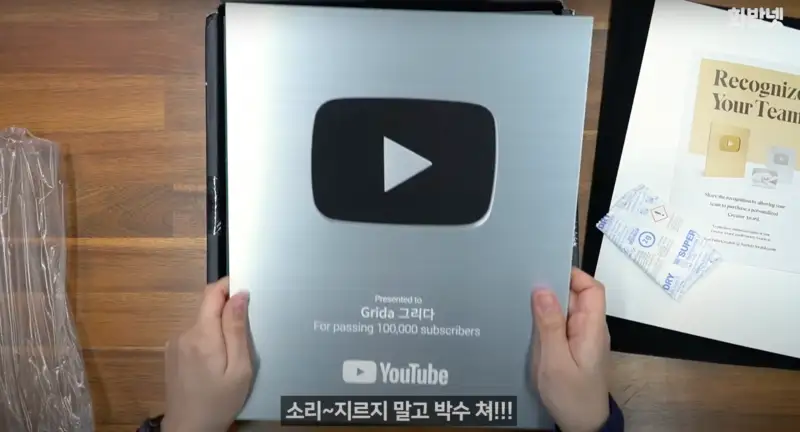10만 구독 기념으로 받은 실버 버튼이 드디어 도착했습니다!😍