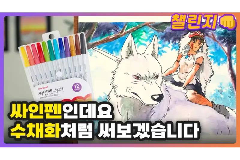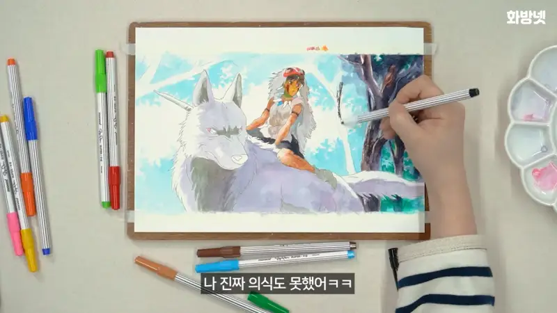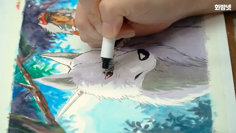 모나미 12색 싸인펜으로 원령공주 그리기!