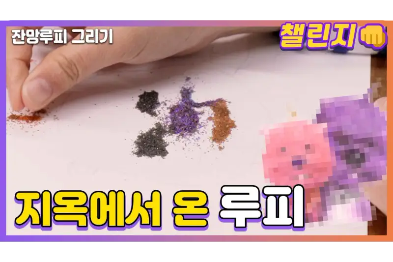 오늘은 다이소 색모래로 잔망 루피 그려봤어요!