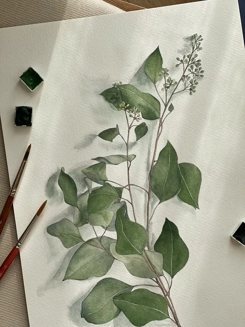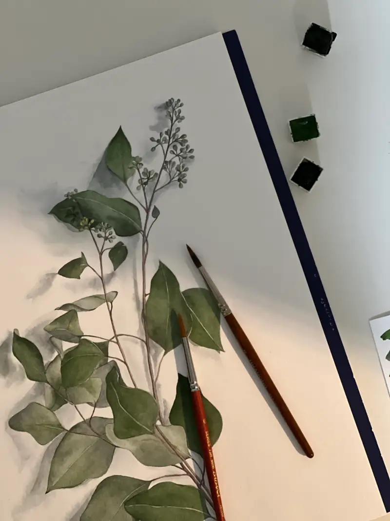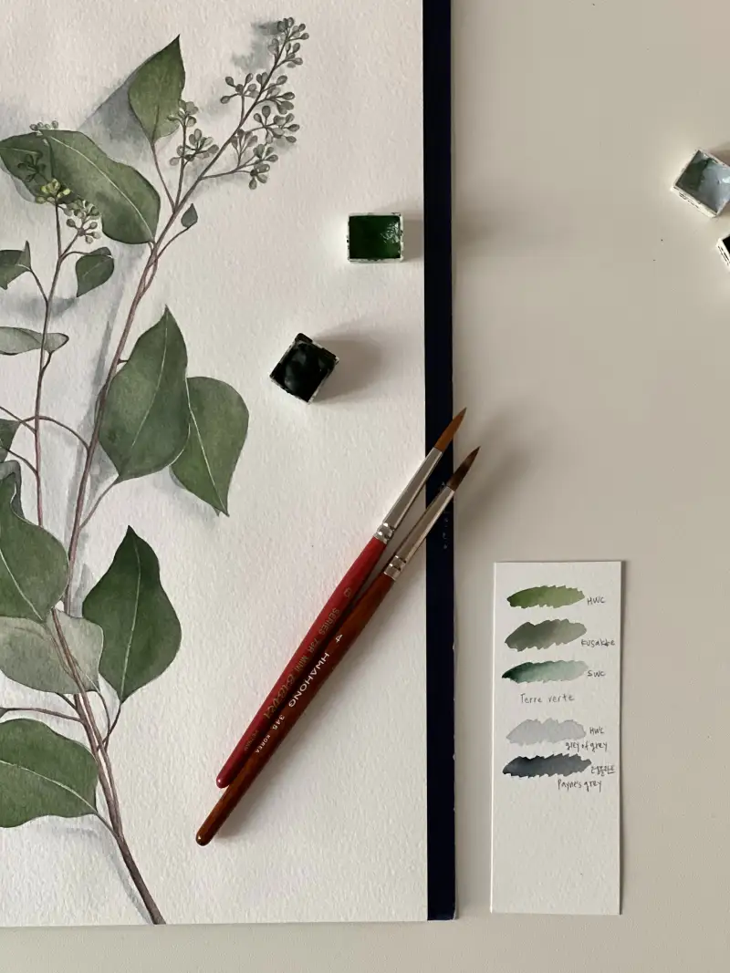위의 그림을 그릴 때는 화홍 345 4호와 바바라 73R 미니 6호만 사용해서 그렸어요. 붓의 담수력이 좋아서 이 정도 넓은 면적의 그림도 충분히 그릴 수 있었네요. (이 두개의 사이즈가 5본조 세트에선 제일 두꺼운 사이즈에요!)