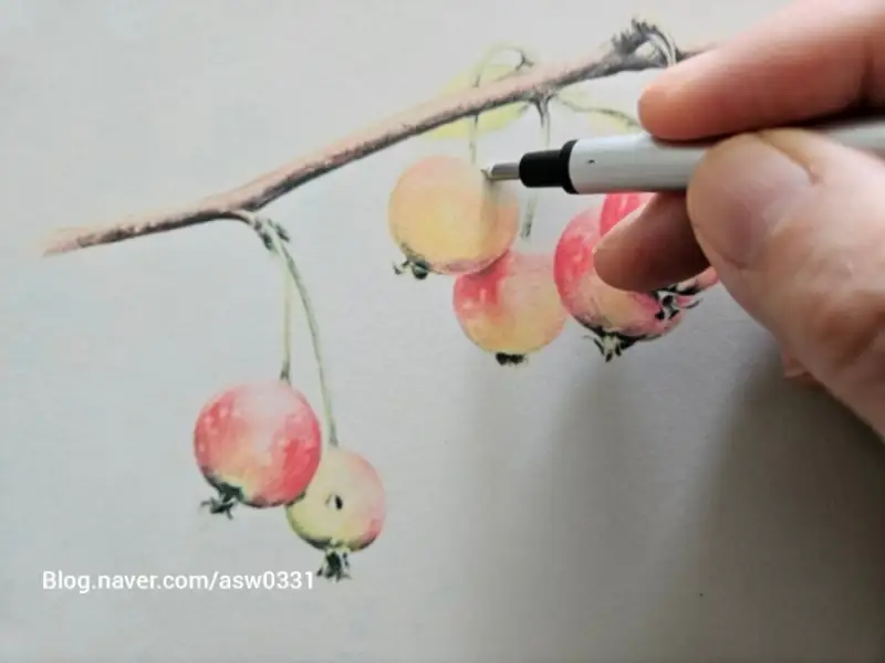 그럼 색연필로 꽃사과를 그려보며 지우개의 다양한 기법을 알아보도록 하겠습니다.