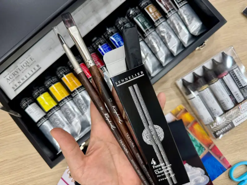 블랙 우든 박스 안에는 라파엘 아크릴 붓과 목탄도 함께 들어있어요.