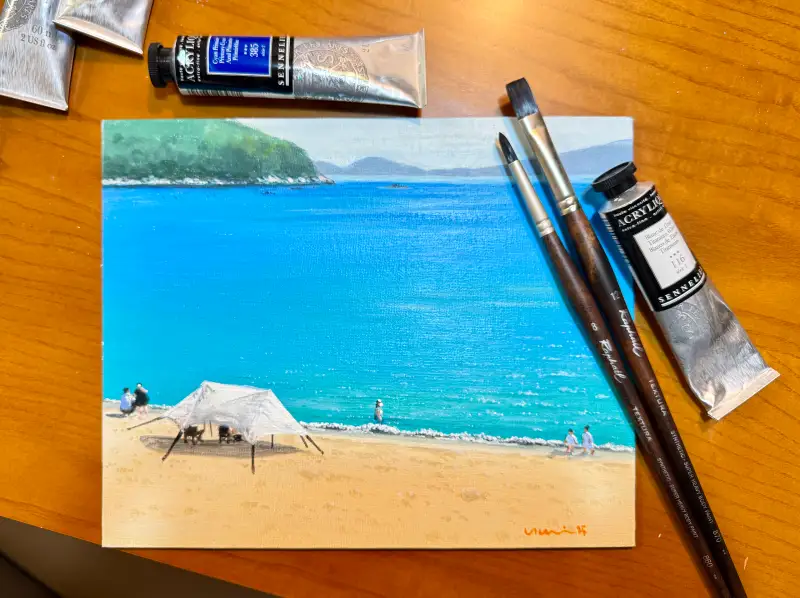 시넬리에 extra-fine 아크릴 물감은 색상의 선명도도 뛰어나고 물감이 마른 후에 색상변화도 없어서 완성작도 매우 만족스러웠어요.