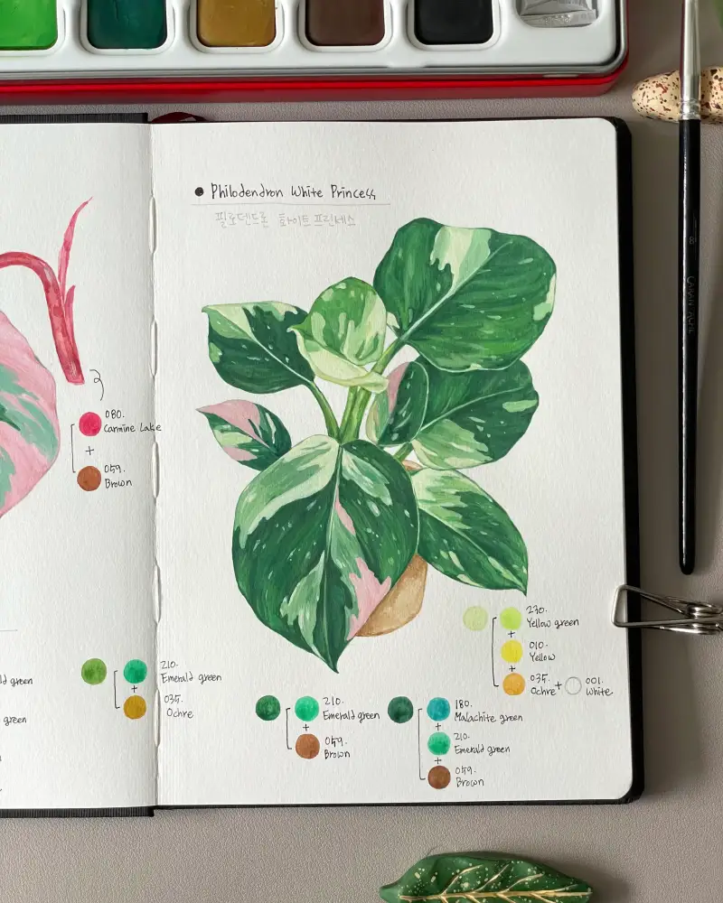 (저는 초록잎을 조색해서 칠할때 생각보다 어두워져서 흰색을 조금씩 섞었더니 색상이 한층 선명해졌어요)