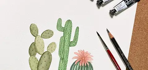 골덴 쿠아, 바바라 70R 수채화 붓으로 선인장 그리기