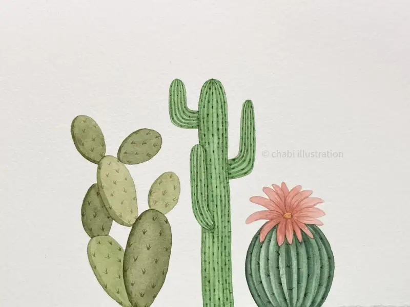 여름을 맞이해서 선인장 3종 세트를 그려보았는데,