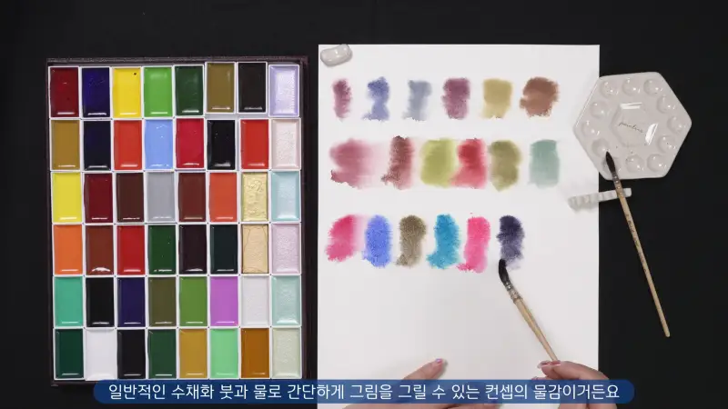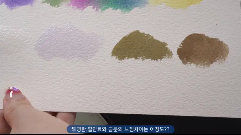 발색테스트에세도 수채화전용지에 발색을 했을떄는 수채화 같은 느낌을 많이 받았어요~