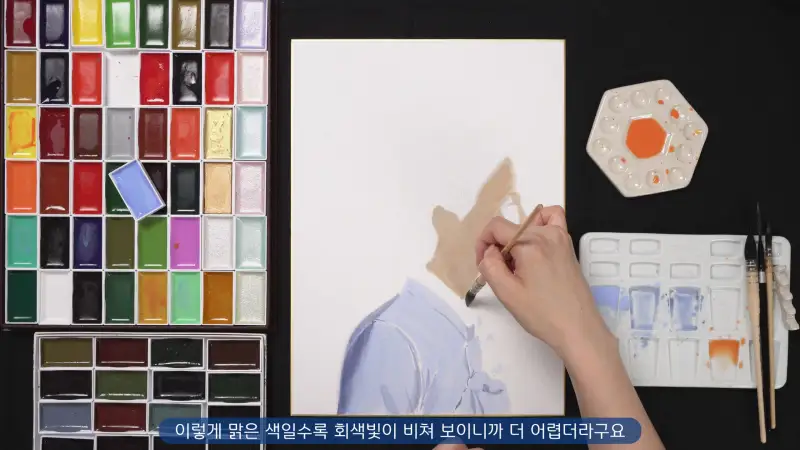 이번 포스팅은 길상에서 나온 채미먹 고체 물감과 안채고체물감, 그리고 두방지 시키지를  사용해서 인물화를 그려봤어요~