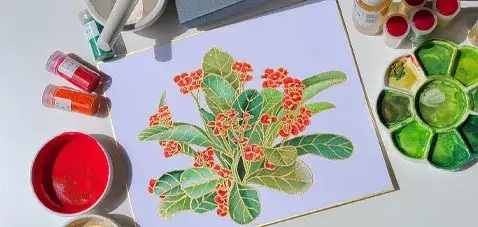 길상 동양화 물감으로 그린 꽃그림