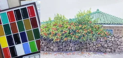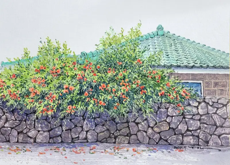 7월에 지원 받은 길상 안채 물감으로 채색해 본 풍경입니다