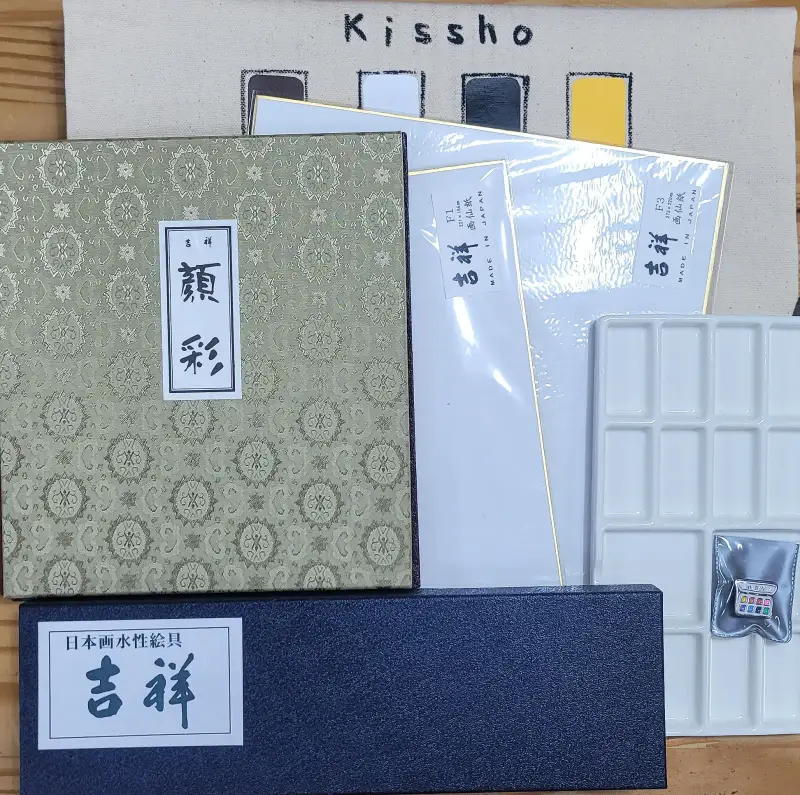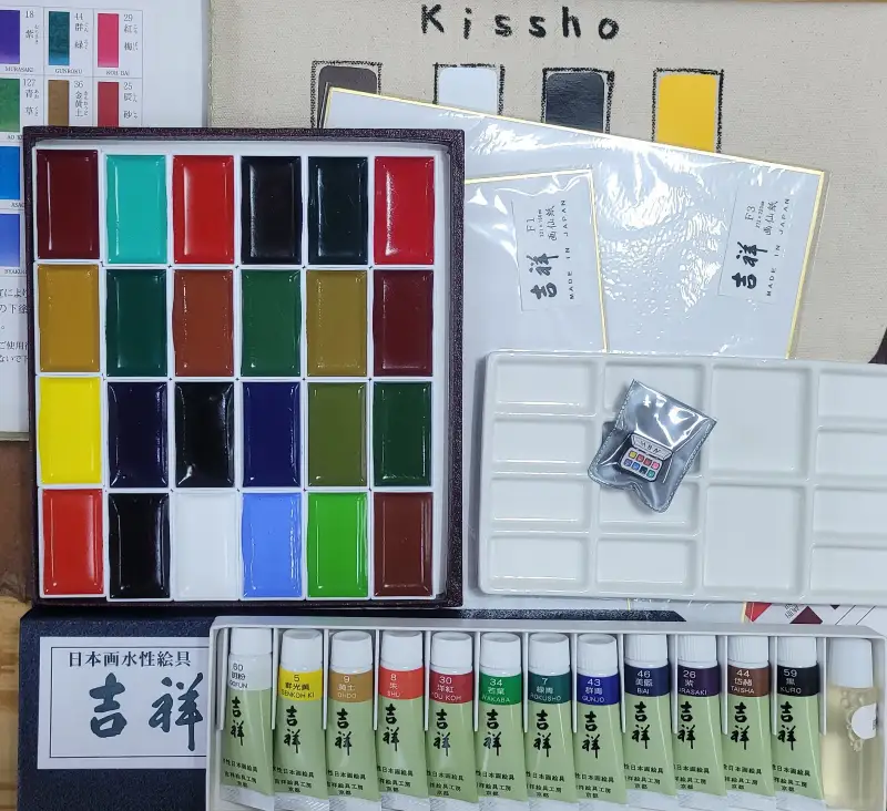 길상 안채 고체물감과 튜브물감, 도자기 팔레트, 두방지(시키시)서화판을 제공 받았는데