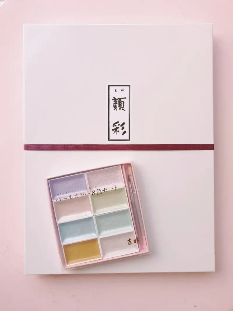 "길상 안채 원형 접시 고체 물감 과 길상 안채 접시 고체 물감 펄 색상 8색 세트" 입니다.