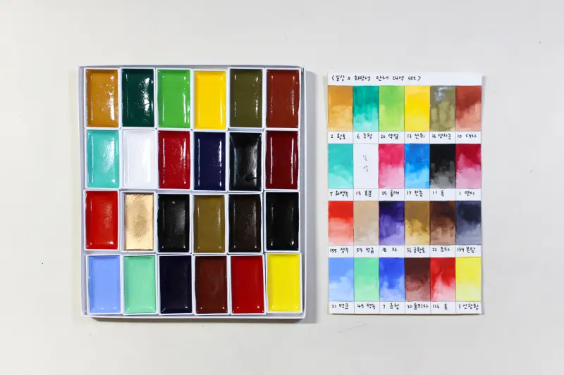 동양화 그리기 세트에 포함된 제품으로 기본적인 길상 안채 24색와는 색 구성의 차이가 있다고 합니다.