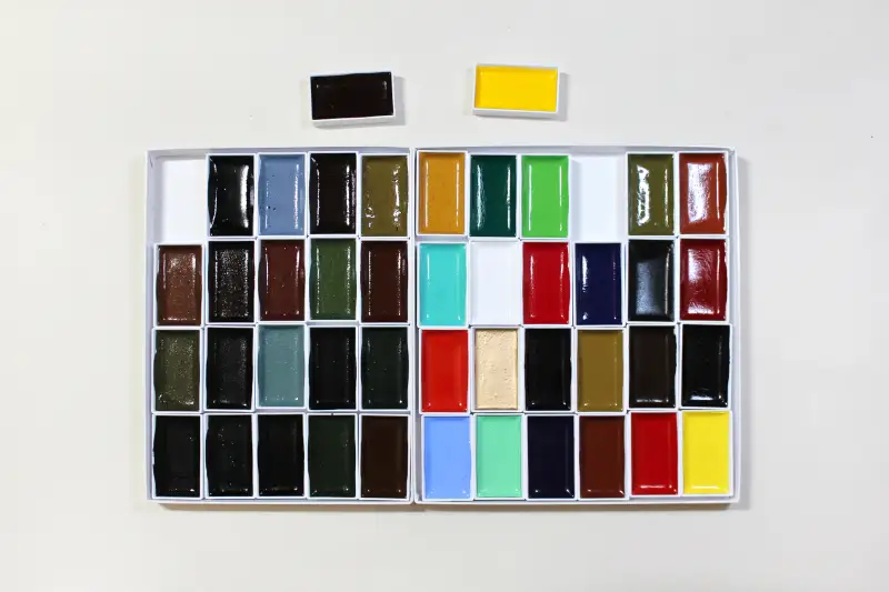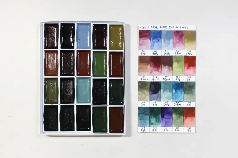 그리고 두 제품은 안료를 아교에 섞어 접시에 굳힌 안채라 초보자도 쉽고 편하게 사용할 수 있어요!