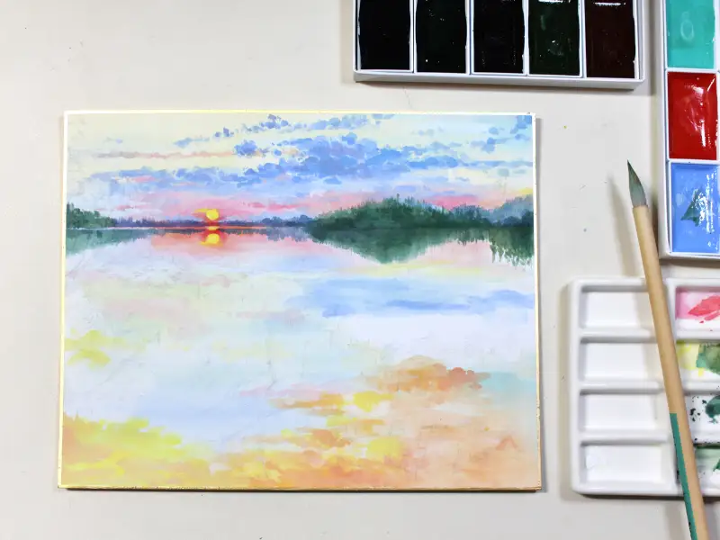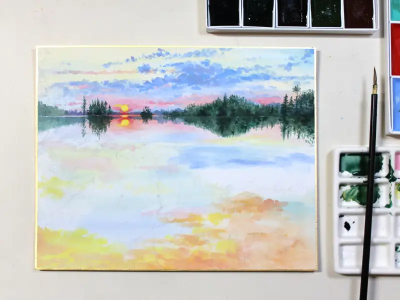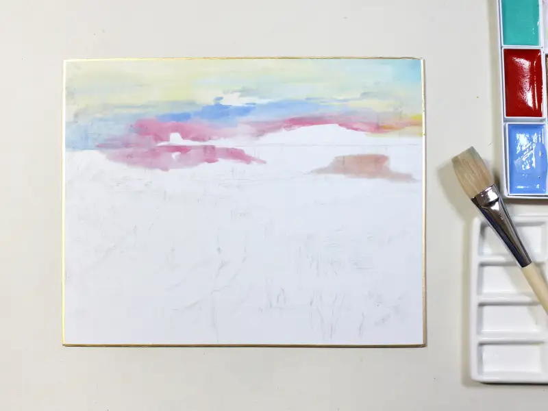 동양화 초보자라 너무 섬세한 디테일의 그림은 무리일 것 같고 그렇다고 넘 단순한건 싫어서 노을로 물든 알록달록한 풍경을 그리기로 했습니다.