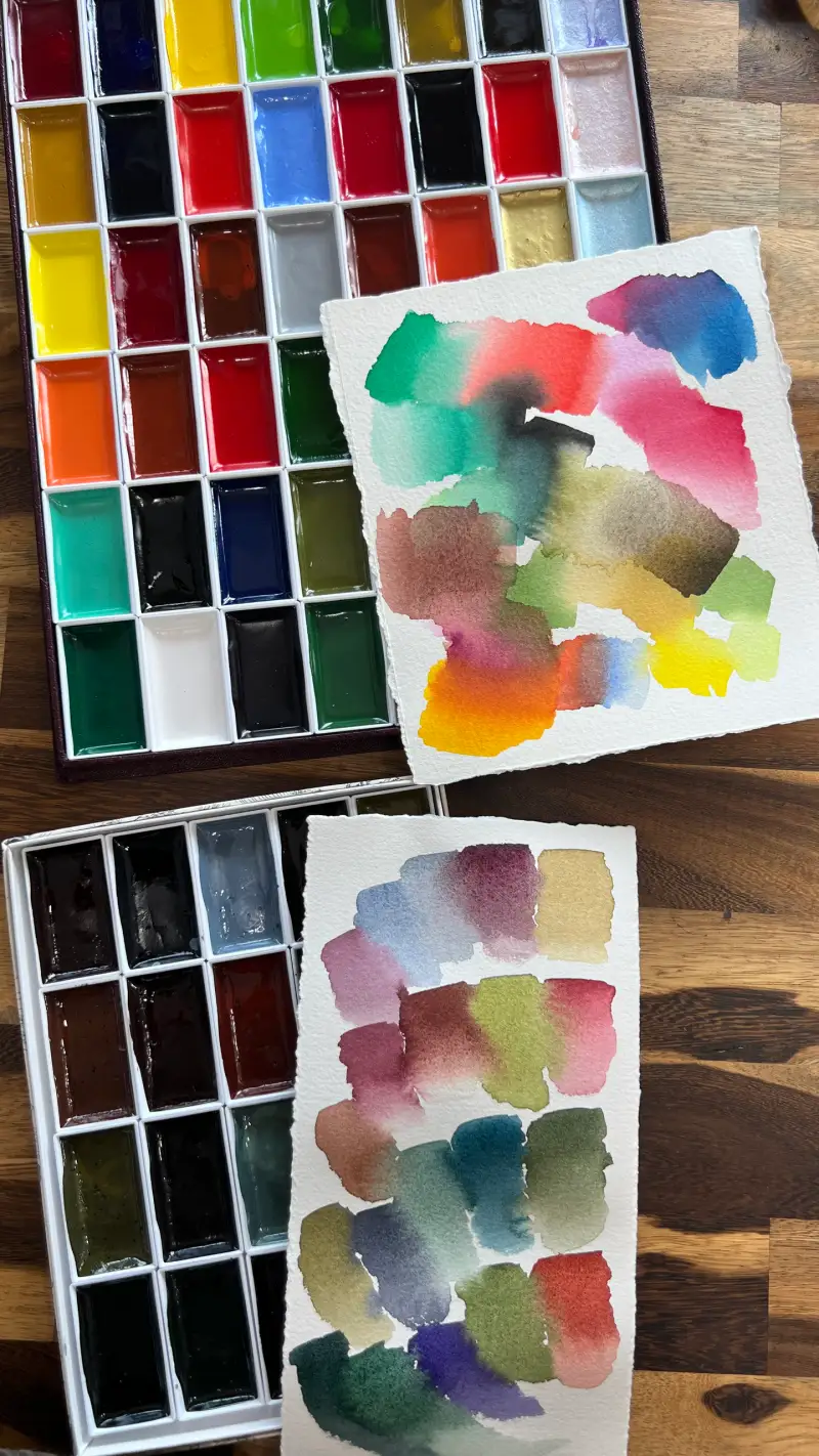 테스트 결과 정말 짙은 발색의 색채감과 물 조절에 따라 투명한 색까지 가능합니다. 부드럽게 스미고, 섞이고, 겹치는 감탄스러운 물감입니다.