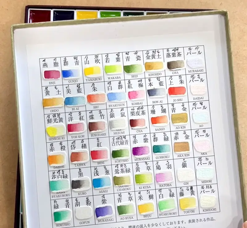 안채 고체물감 커버 안쪽에 이렇게 색차트를 붙이니 편리합니다.
