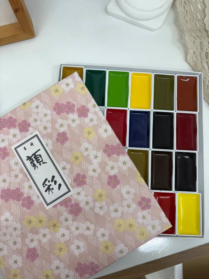 •안채색은 동양화 전용의 불투명 수용성 안료로, 맑고 은은한 발색이 특징입니다. 여러 번 쌓아 올려도 색이 탁해지지 않고, 번짐을 최소화하여 섬세한 작업이 가능해요.