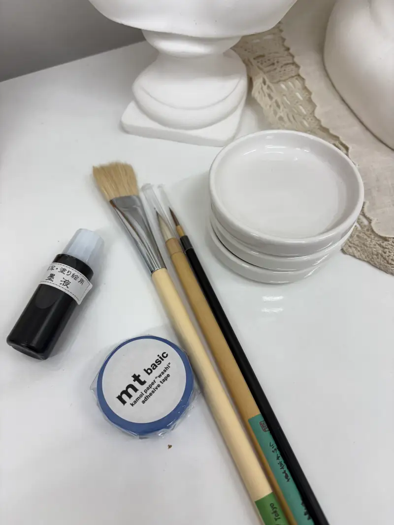 •전통적이면서도 심플한 도자기 파레트. 안료의 색을 잘 알아 볼 수 있어요.