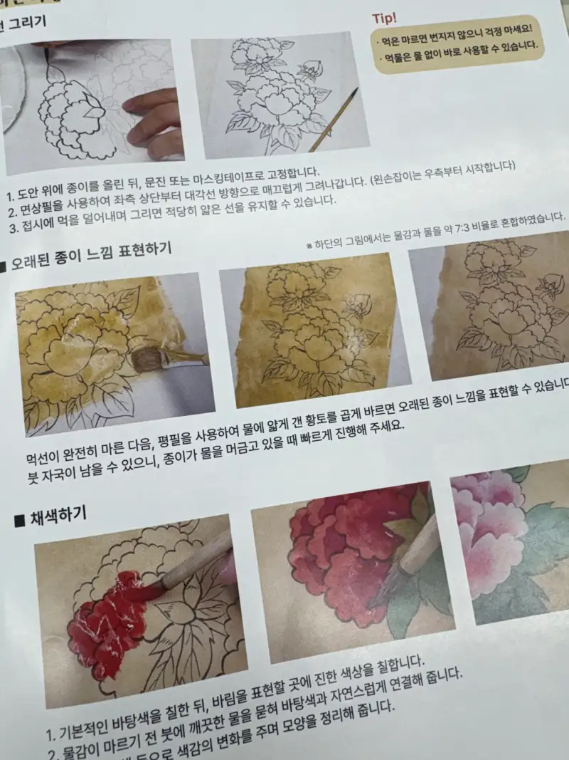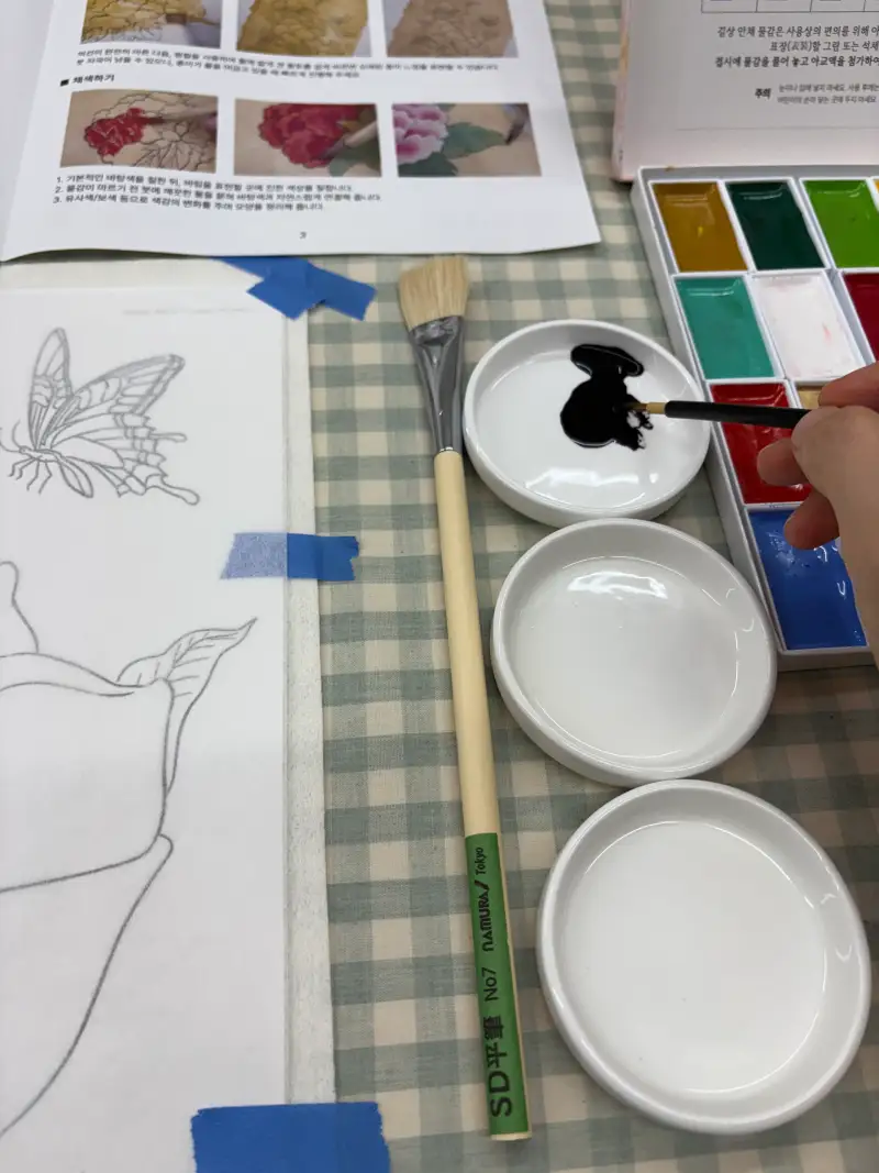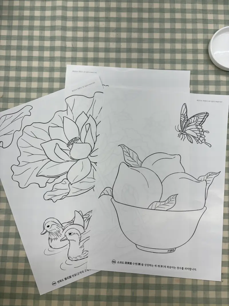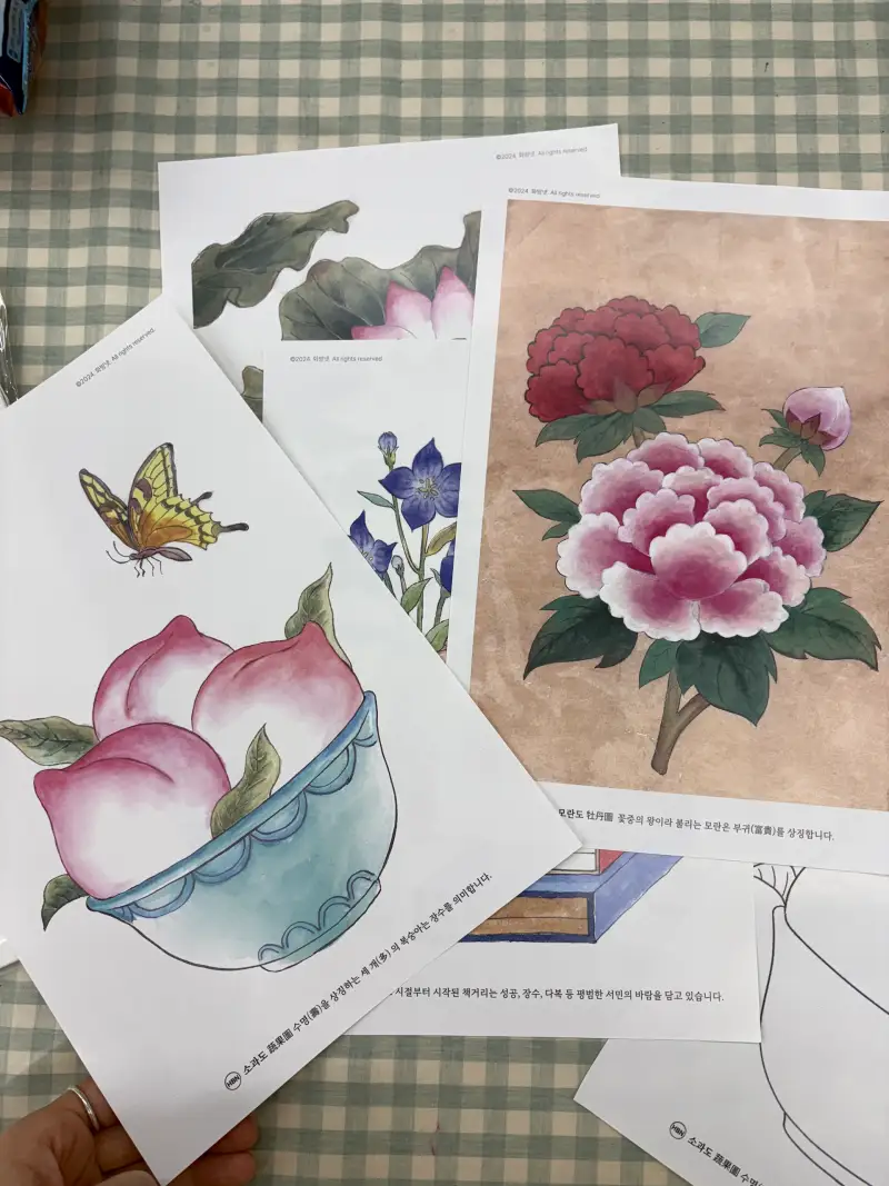 특히 물감이 일정하게 스며들고 고르게 퍼지는 느낌이 안정적이어서 초보자도 부담 없이 민화를 즐길 수 있을 것 같았어요.