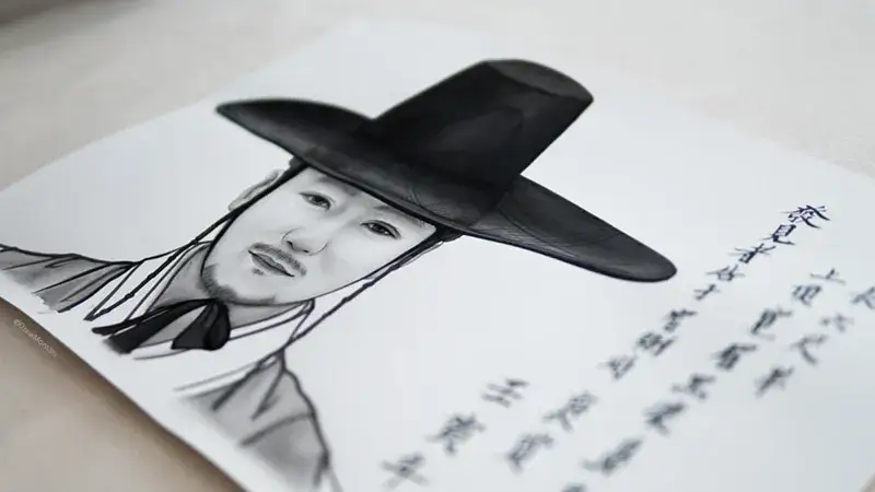 길상 최고급 진한 먹물로 김남길 배우의 용모파기 그리기