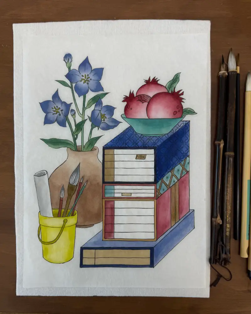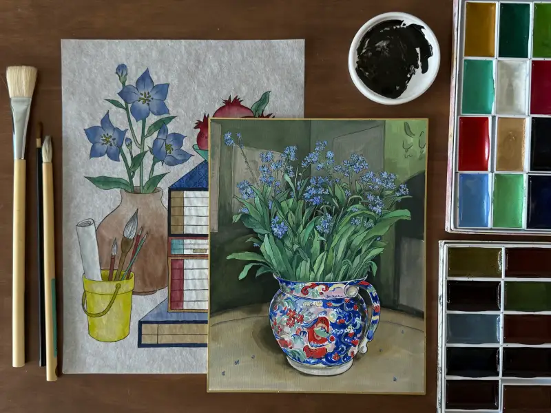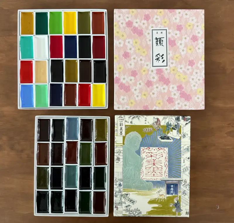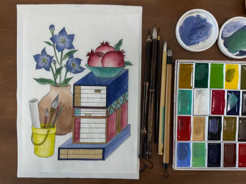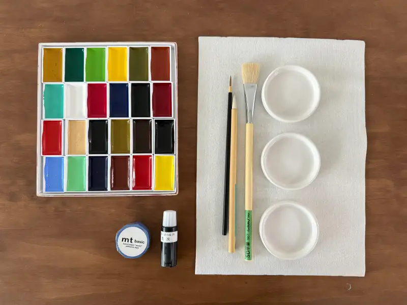 붓, 먹, 도자기 팔레트, 모포, 마스킹 테이프는 물론이고