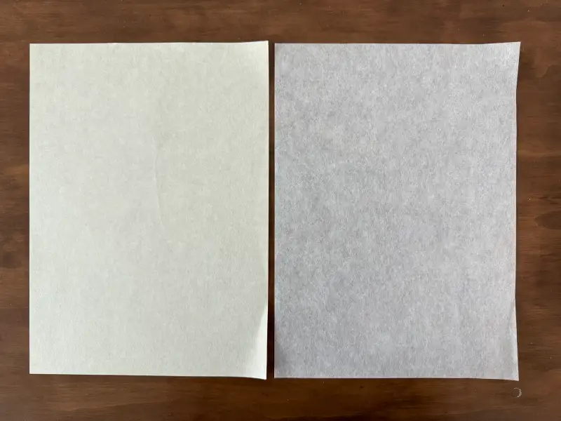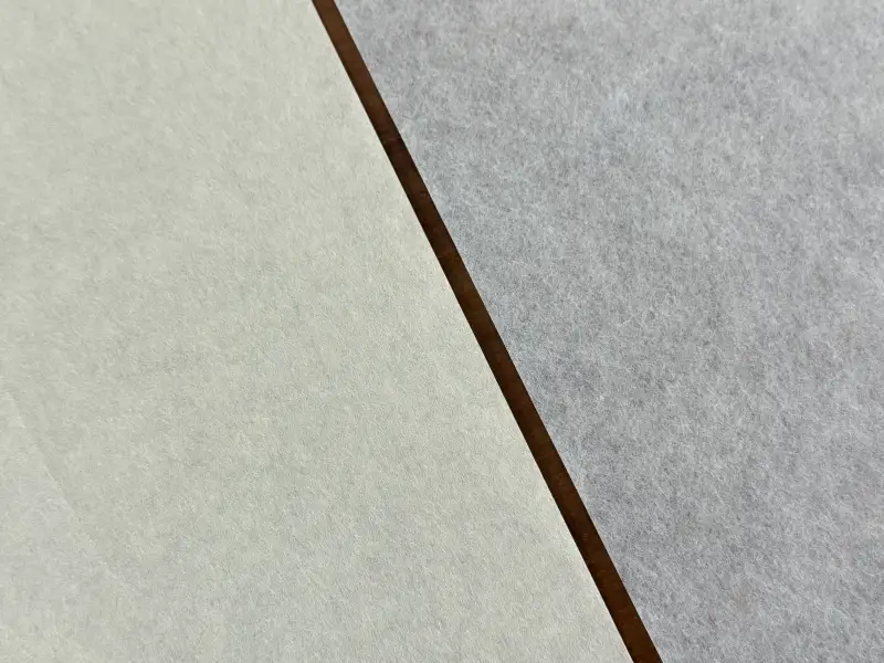 더 투명하고 새하얀 오른쪽이 작품용 화선지에요.