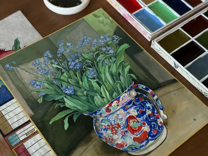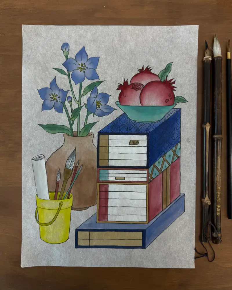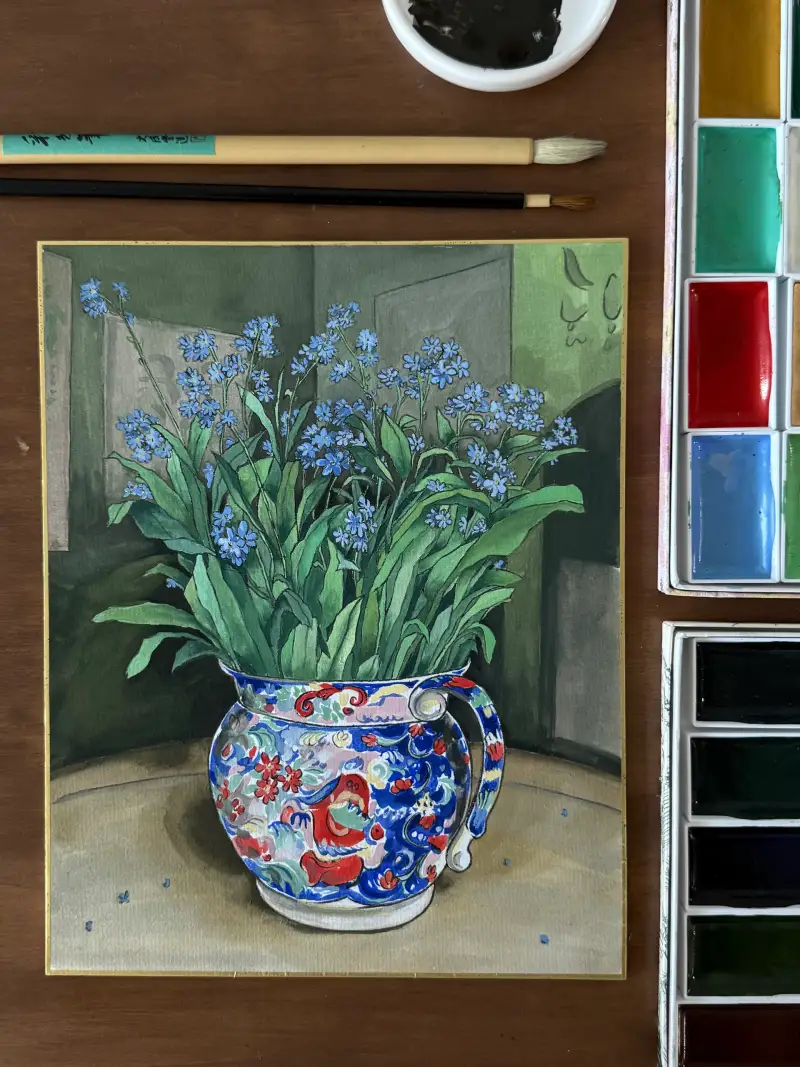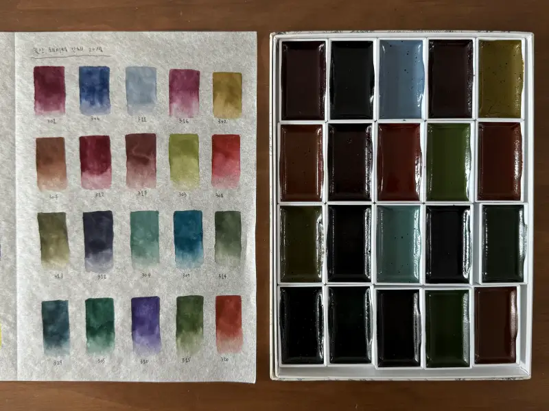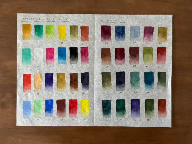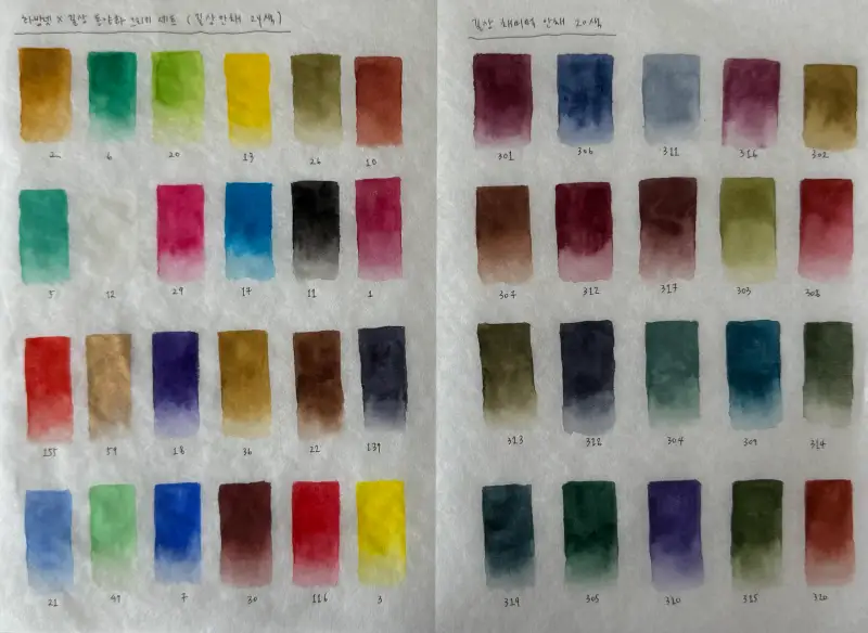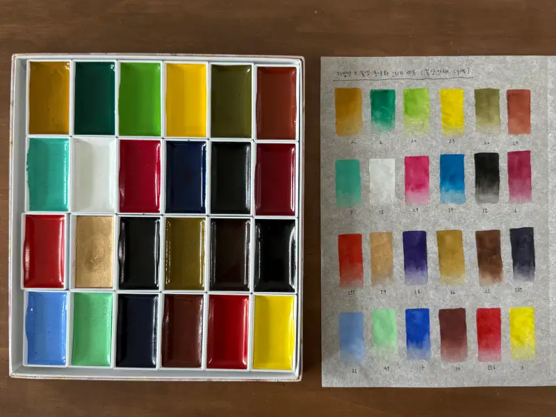 동양화 물감은 수채 과슈 물감과 비슷한 거 같아요.