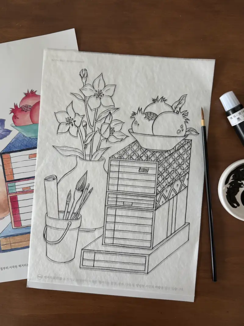 길상x화방넷 동양화 그리기 세트에 들어있던 도안을