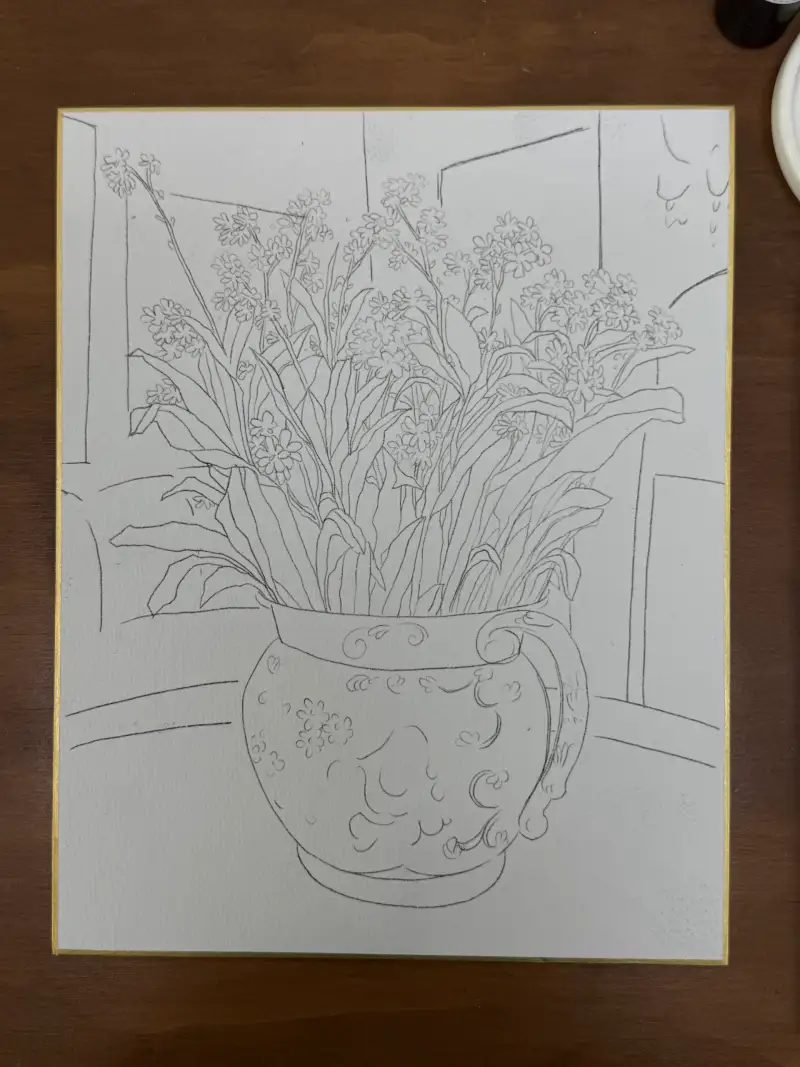 다른 종이에 스케치를 한 뒤 먹지를 활용해 선을 옮겨주었어요.