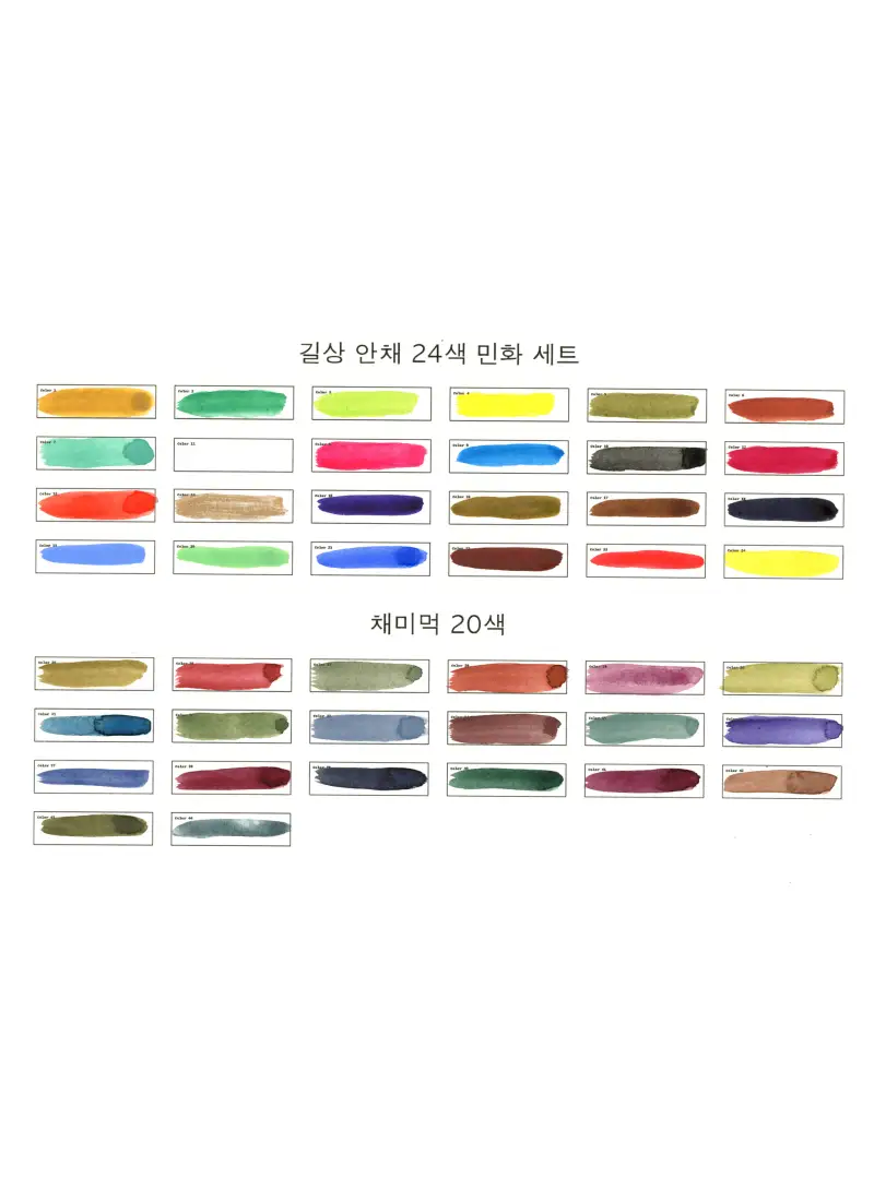 안채 24색과 채미먹 20색은 민화 작업에 필요한 색감을 충분히 담고 있어 다양한 표현이 가능했어요.