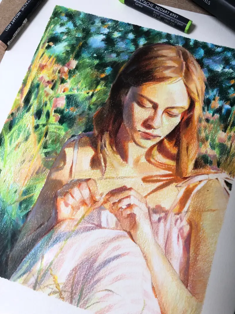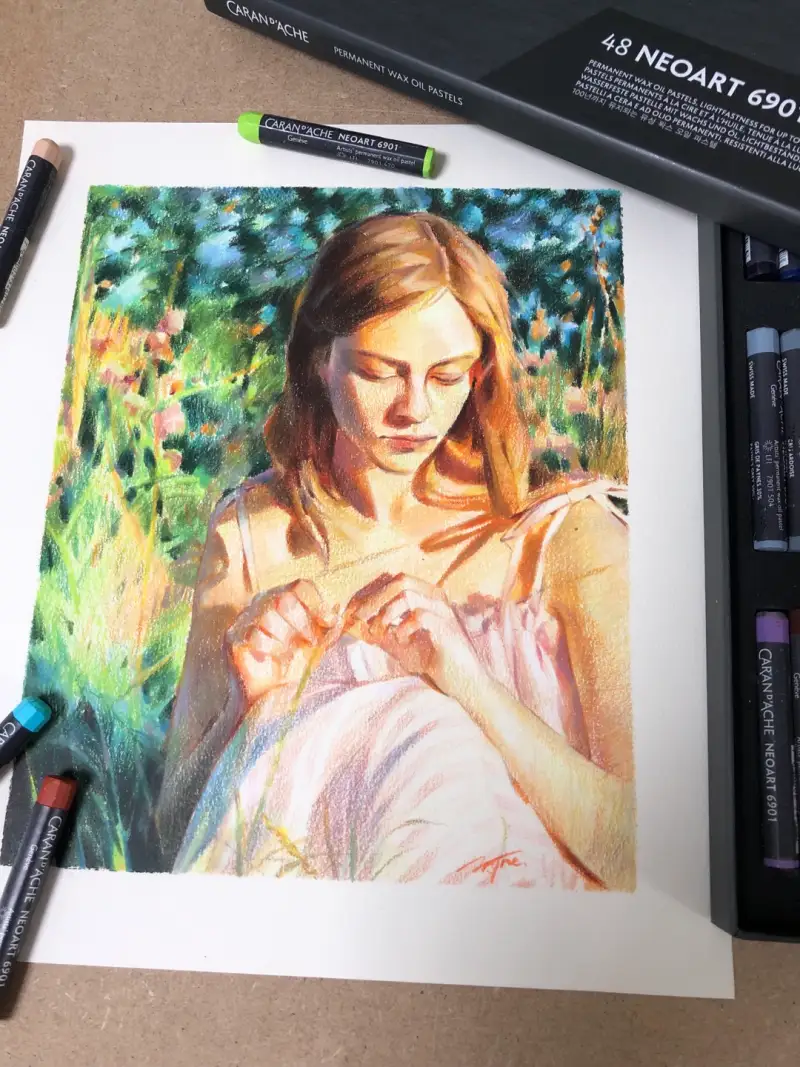 까렌다쉬 6901 왁스 오일파스텔의 풍부하고 선명한 색감을 활용해 포근한 이미지를 완성했어요.